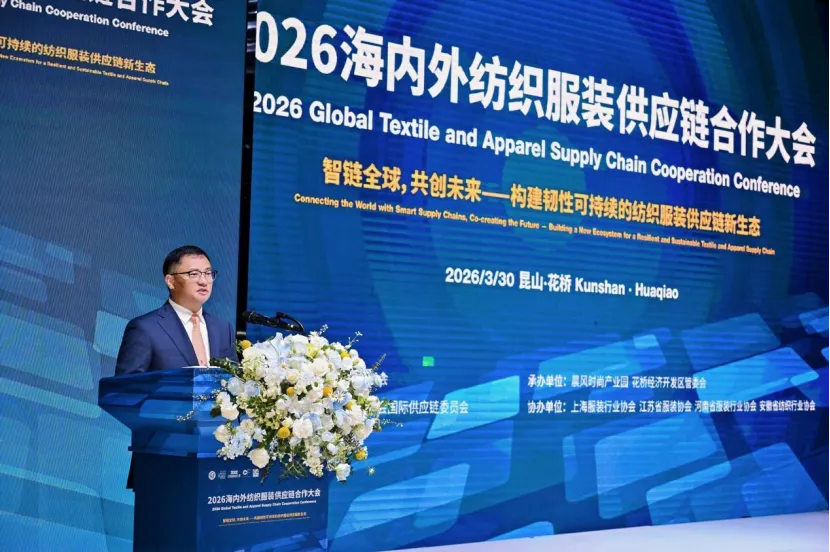 3月30日,2026海內外紡織服裝供應鏈合作大會在昆山花橋晨風時尚產業園召開。本次大會由中國紡織品進出口商會國際供應鏈委員會主辦,晨風時尚產業園、花橋經濟開發區管委會承辦,上海服裝行業協會、江蘇省服裝協會、河南省服裝行業協會、安徽省紡織行業協會協辦,吸引了來自海內外紡織服裝品牌、成衣、家紡、面輔料等供應鏈上下游的超300名企業家、行業專家和商協會代表到會。