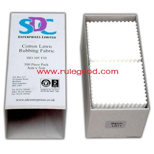 SDC ISO標準摩擦布用于ISO 105 X12, M&S C8 干濕摩擦顏色堅牢度和耐雨水顏色堅牢度測試等等。 產品尺寸和包裝: ☆ 5厘米x 5厘米。每盒500片。