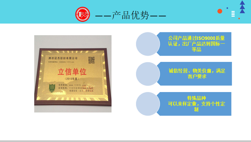 濰坊冠杰紡織有限公司,位于有“中國紡織之鄉”和“風箏之都”美稱的山東濰坊。