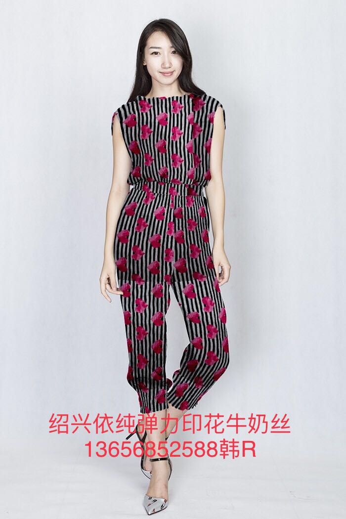 紹興依純針紡織品有限公司,專業生產各種規格的冰絲,拉架,四面彈,氨綸布牛奶絲,染色,分散印花和數碼印花,燙金燙花,磨毛,起絨等。是做居家服,流行時裝,運動服和瑜珈服理想面料。國內北方還是做棉衣棉褲的最佳面料。本公司長期和國外知名大型商超合作,H&M, 沃爾瑪等各類巨頭合作的服裝公司。歡迎大家一起加入我們的團隊。可以提供不同規格,不同花型的印花。染色、扎染、燙金等工藝產品供您選擇。價格實惠,質量保證。紹興依純針紡織品有限公司韓經理熱忱歡迎國內外新、老客戶光臨指導!真誠期待您的惠顧!13656852588 0086-0575-85566067(傳真) QQ:543402201 Eail:sxzzjfml@163.com Eail:543402201@qq.com