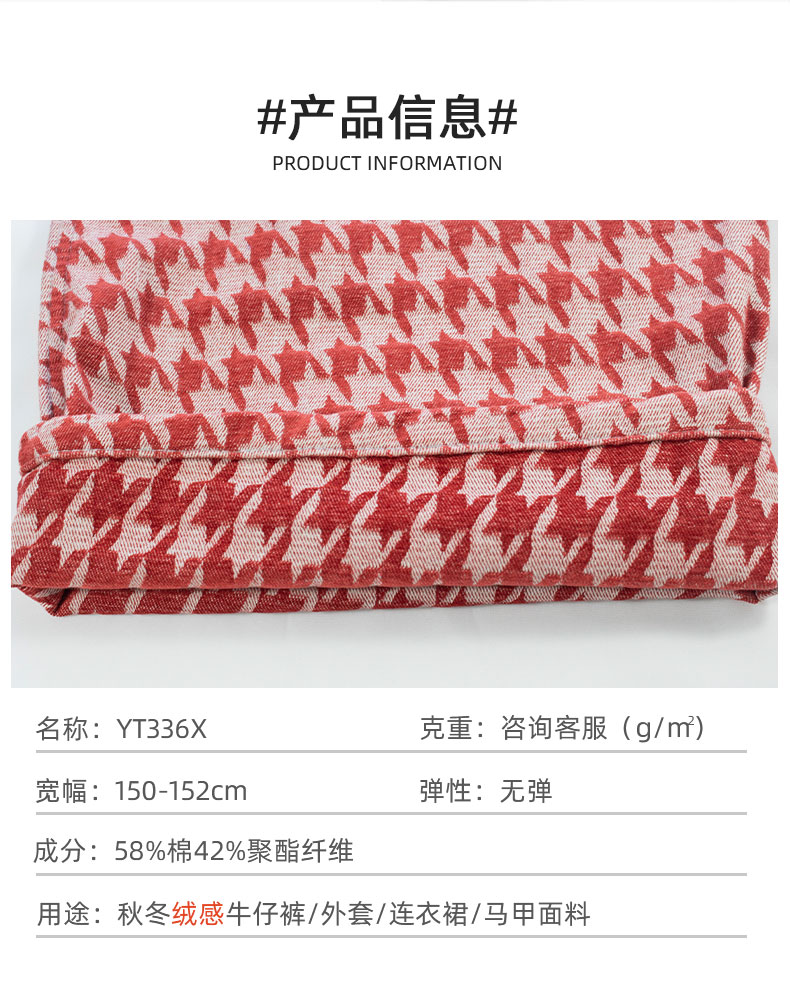 關鍵字:絲絨牛仔面料,提花牛仔,千鳥格,秋冬牛仔