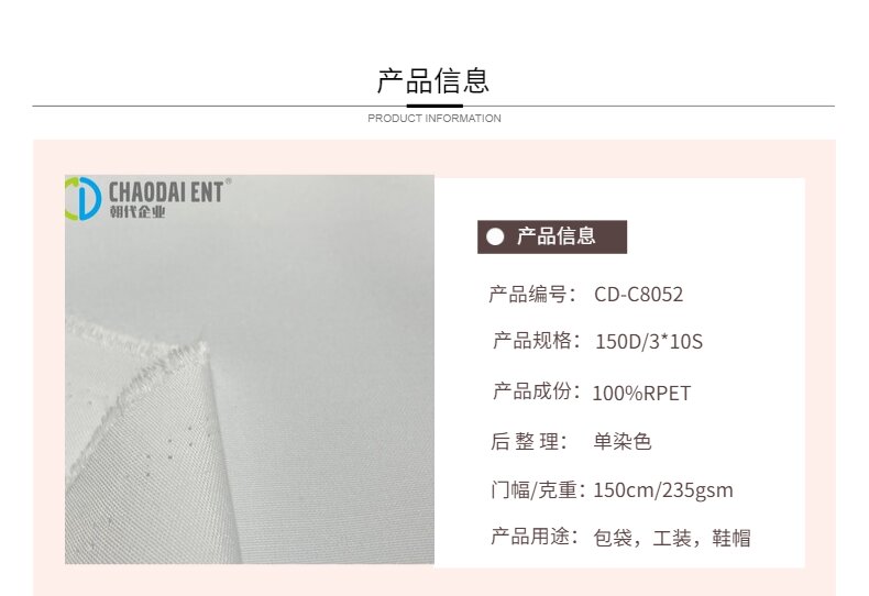 關鍵字:再生滌綸面料,帆布面料,工裝面料,包袋面料