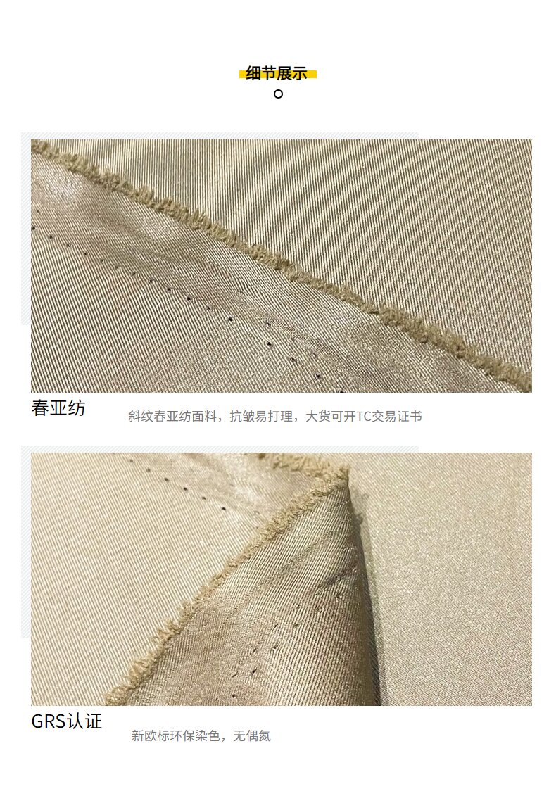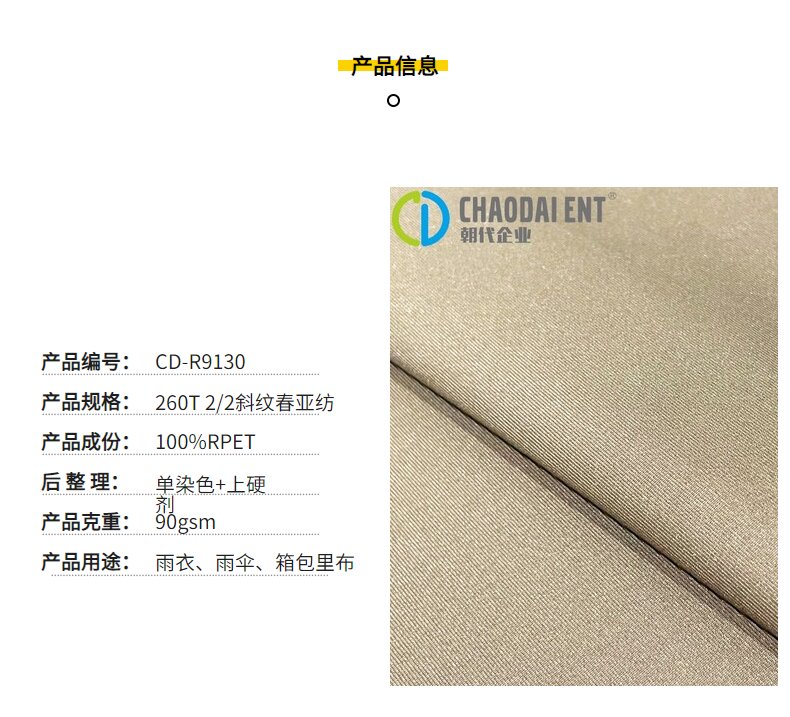 關鍵字:再生春亞紡面料,斜紋面料,箱包面料,雨衣面料,雨傘面料