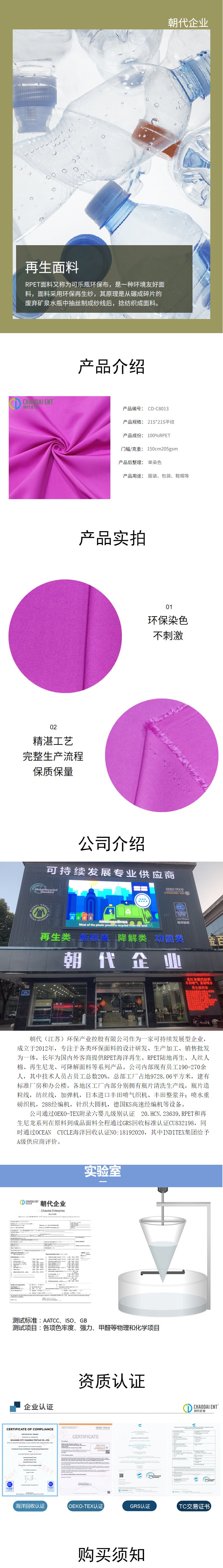 成份比例 100%RPET