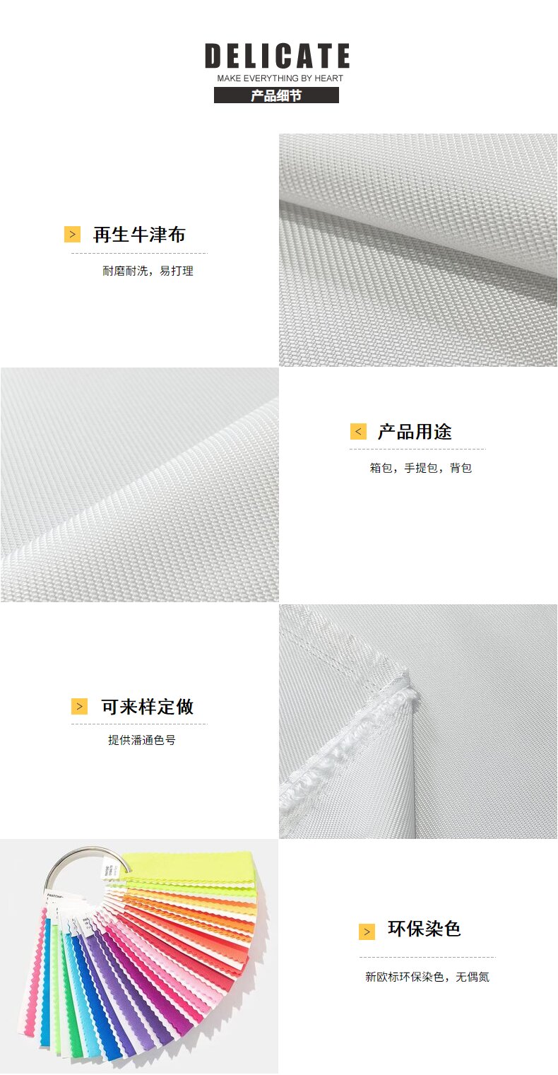 關鍵字:再生面料,長絲牛津布面料,箱包面料,手提包面料