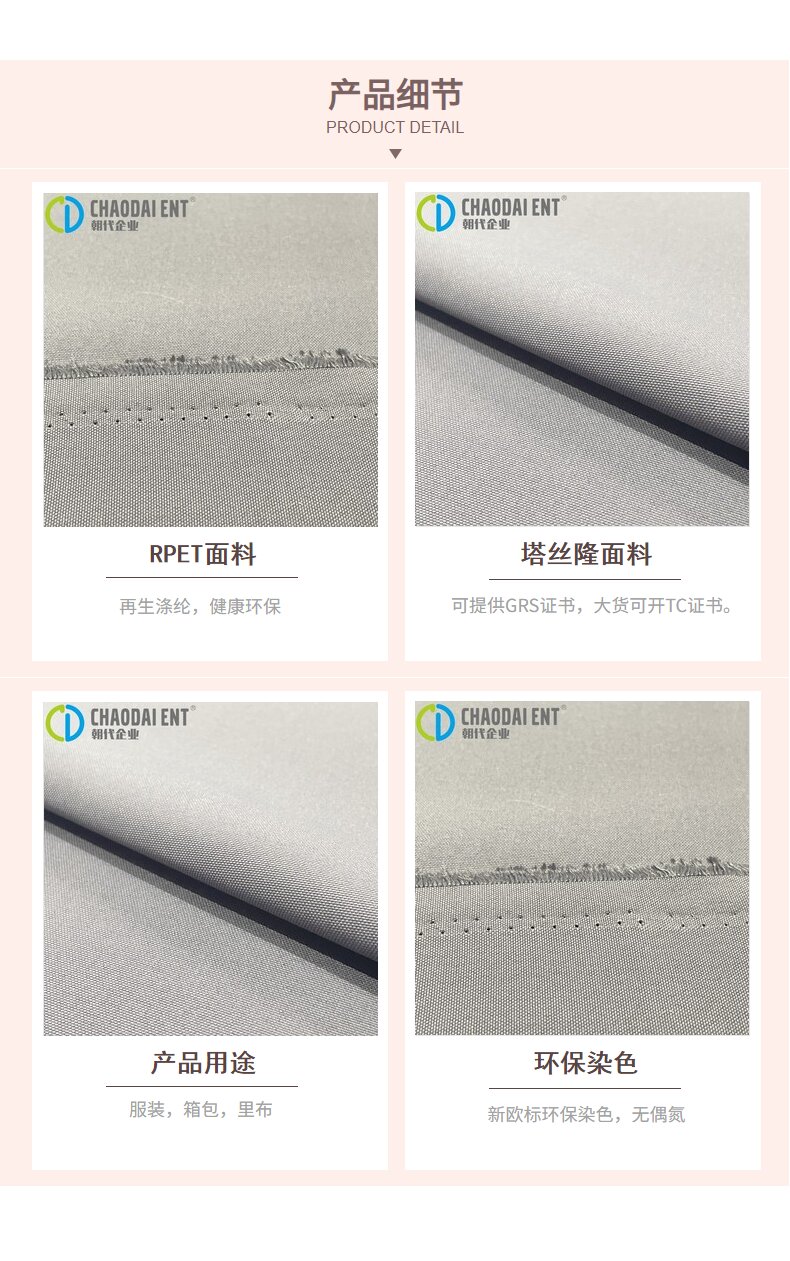 關鍵字:再生面料,牛津布面料,塔絲隆面料