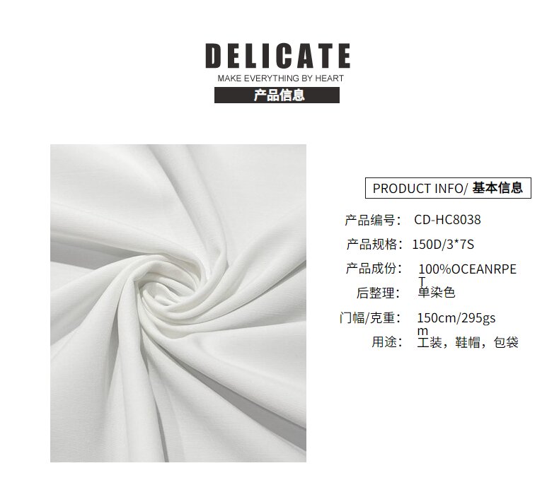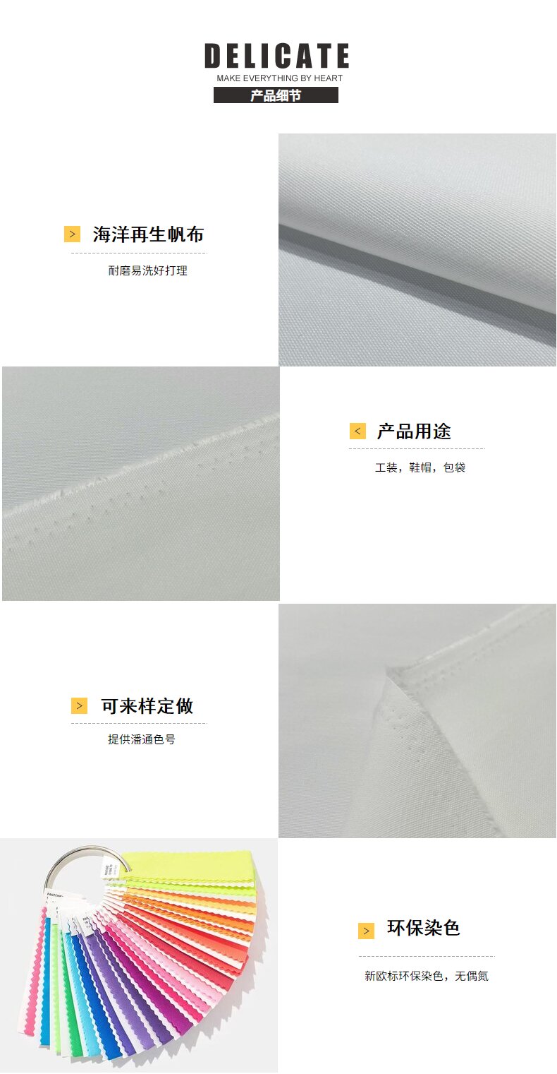 關鍵字:海洋再生面料,帆布面料,包袋面料,服裝面料