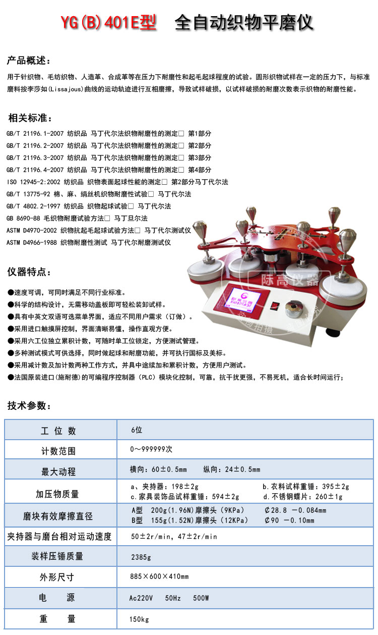 【適用范圍】:該儀器適用于大多數(shù)織物(對毛機織物更為適宜)受輕微壓力情況下起球及細