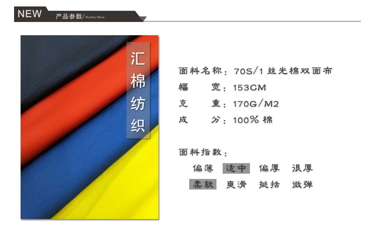 產品關鍵字:絲光棉布,絲光棉汗布,絲光棉雙面布,絲光棉面料,雙面布