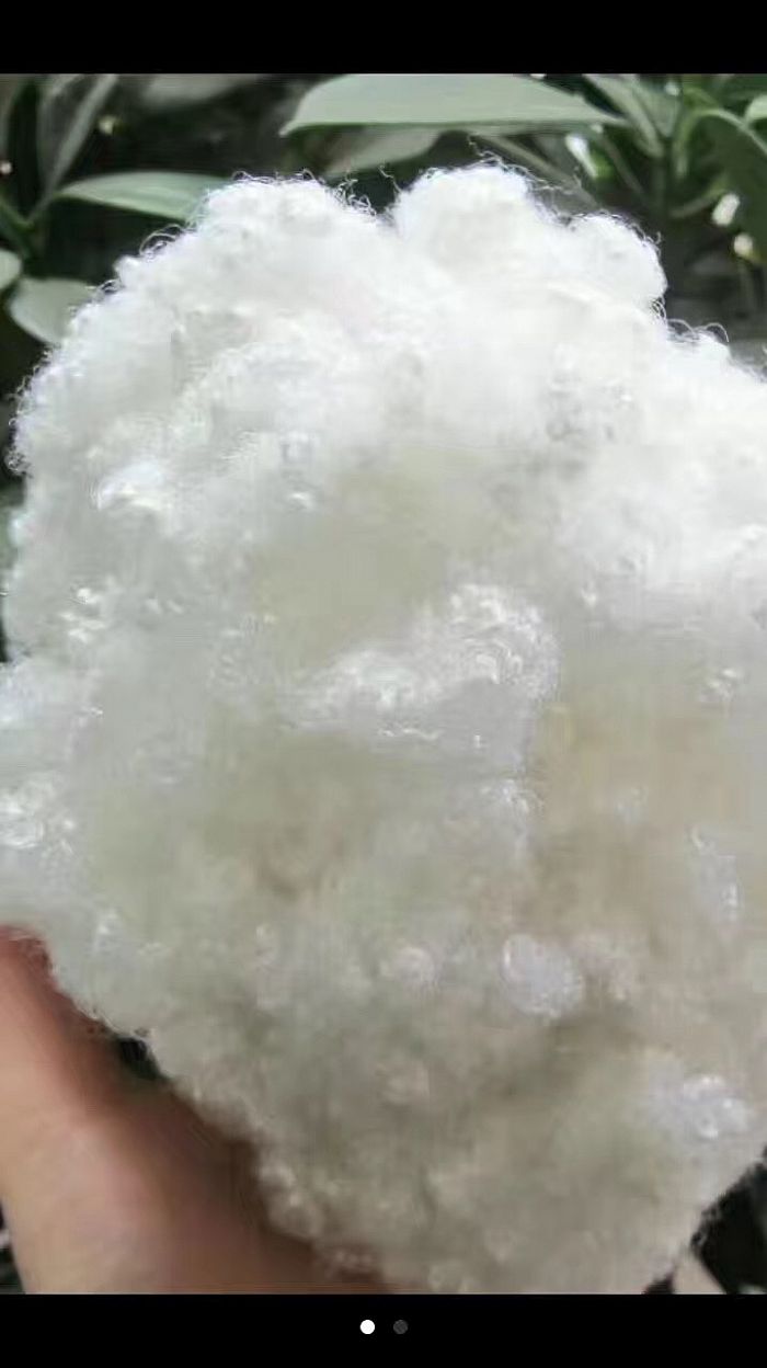 三維卷曲中空纖維: 0.9-22.2dtex×64/51/32mm中空有硅無硅型、阻燃防火型、抗菌防螨型等,德賽化纖中空纖維生產線是國內單線產能最大的熔體直紡中空纖維生產線,德賽化纖三維卷曲中空纖維采用了非對稱冷卻成型技術,使纖維截面有不同的外觀結構而產生不同的收縮效應,形成“永久性”螺旋形立體卷曲,產品膨松性高、彈性好、保暖性強、手感柔軟滑爽、回彈性好,壓縮回彈率高,抽真空后不變型,并具有剛性大、覆蓋性好的特性。