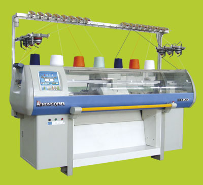 隆重推出(a) 全功能(全自動)電腦針織橫機 (b)韓國直排式縫合機,韓國高速側縫縫合機 (c)多功能提花橫式毛衣編織機。 (d)自動毛衣編織機(全自動加減針橫機) (e)新型高速靜音直針式縫合機 (f)新一代具有翻針功能的電腦織領機(g)針織大圓機,無縫內衣機 1、多功能提花橫機:該機將家用提花機和工業針織橫機結合,不僅具有這二者的功能,還具有引返,嵌花,三級胖花等功能,該機做工精致,小巧靈活,已申請多項專利,針織機械生產界獨創。 2、自動毛衣編織機:該機節省勞動力,降低勞動強度,提高生產效率,使編織更具人性化 (1)本機是同步皮帶傳動,變頻調速.具有全自動收放針,自動計數停車,自動擴幅(自動放針時),自動縮幅(自動收針時),自動換色,斷針自停、斷線自停、浮目自停、掉片自停等故障停車并自動報警。 (2)可編織各種毛紗的衣片、袖子(有下擺羅紋)、褲子(有下擺羅紋)門襟、下擺、領子、圍巾、帽子等織物的有規律提花功能。 (3)根據不同原料不同編幅可自動伸縮幅度 (4)編制程序簡單、易學易懂,在一臺機內可儲存4種花型 (5)此機速度快,每小時能編織7-8只袖子,投資少收回快,減少人工,解除找不到工人的煩惱,是服裝廠最理想的機器 ; 3、新型高速靜音直針式縫合機:該機結構創新故障率低,維修容易,運轉無聲,超高轉速,提高生產效率,直式大針穿透力強(傳統縫合機屬于彎針式,連動桿傳動噪音大,不容易維修),特適合厚料縫制,不易損破織物,縫跡更美觀,機臺運行保養方式與傳統普通縫合機一樣,維修更容易(因為其靠齒輪傳動,不象傳統機靠4個聯動桿傳動,必須保持它們同步,維修特別困難).