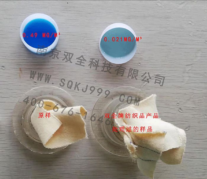 南京雙全科技有限公司厭煩中心的科研人員經(jīng)過近三年的努力,日前終于成功攻關解決紡織品甲醛超標的難題,并在第一時間將紡織品甲醛清除系列產(chǎn)品sq-100,sq-586,sq-5861投放市場,投放市場的產(chǎn)品得到了紡織印染、整理企業(yè)的贊揚。研發(fā)中心研制成功的系列產(chǎn)品,不僅可以直接添加到紡織印染助劑中使用,而且可以添加到水及焙烘工藝之中,徹底解決紡織面料存在的甲醛超標難題,而且不改變紡織印染整理工藝,成本低,效率高,經(jīng)其處理后紡織品的甲醛釋放量完全可以達到國際國內(nèi)標準,可使甲醛釋放量降到10ppm,甚至降到0,這項新產(chǎn)品及新技術的誕生,必將為解決我國紡織品面臨的出口技術壁壘,保障廣大消費者的身體健康作出應有的貢獻。公司2002年成立至今,解決的眾多紡織面料廠家服裝廠家的甲醛超標問題。