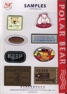 絨服裝吊牌、(充棉,充毛,充液) 絲印高周波商標(biāo)、PVC飾品、電壓銀網(wǎng)商標(biāo),