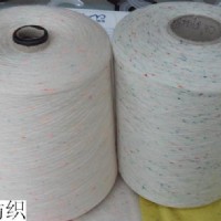 1。底板(基紗)全棉,上面附著紅、黃、藍、綠四個顏色的彩色滌綸小點子,支數在10s—40s這樣一個范圍,不同于粗紡設備用在毛衫上大結子紗,我們的品種優點在于能夠廣泛應用于24-28針的針織大圓機面料中,可以開的布種包括汗布、華夫格、羅紋等等。由于棉的基紗與滌綸點子染色屬性不同,故彩點顏色不會丟失(滌綸要高溫高壓分散染料才能上色,棉紗織成布后用常溫染色,以示區別)。織物表面出現絢麗多彩的點子,形成獨特的一種風格。