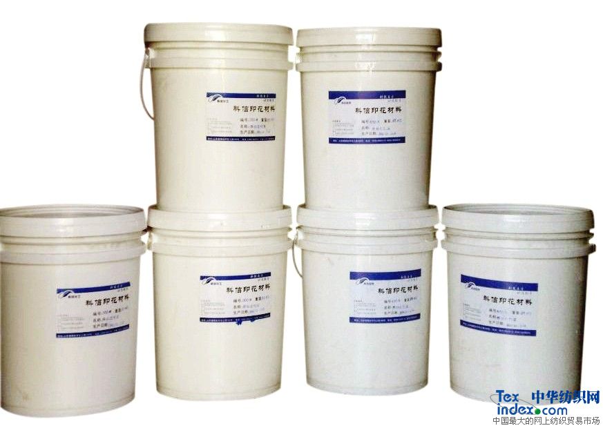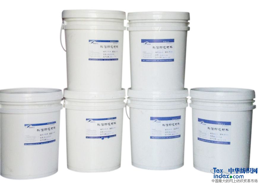推薦本廠優勢印花漿料:科信膠漿、水漿、閃光片漿(金蔥漿)、燙金漿、植絨漿、發泡漿、毛巾漿、梭織布膠漿、普通牛仔膠漿、牛仔噴片漿、粘合劑、增稠劑、柔軟劑、減粘劑、乳化劑、保濕劑、滲透劑。